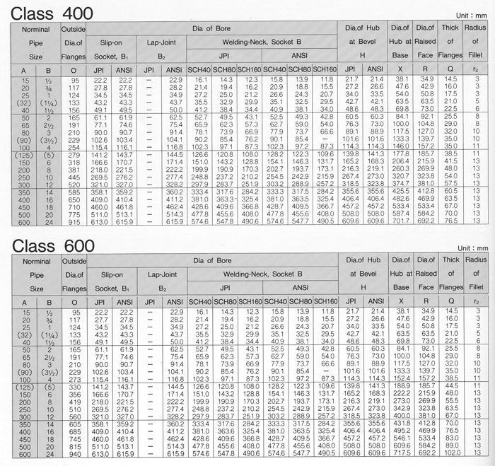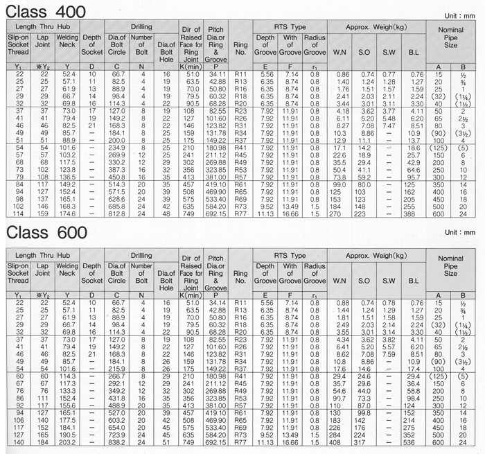 CLASS 400LB, 600LB FLANGES